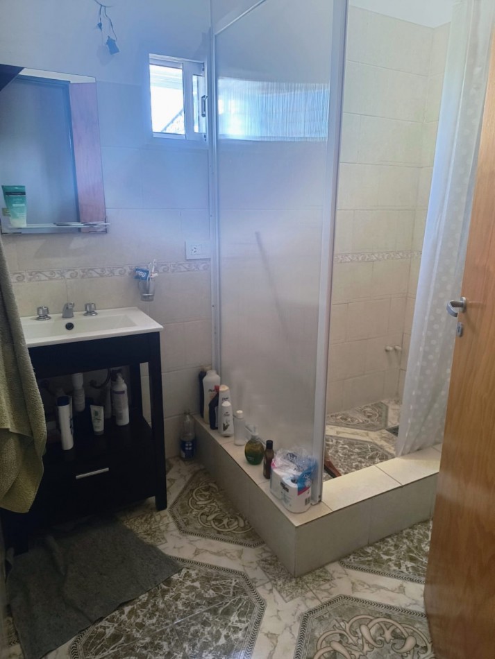 Planta alta: dos dormitorios (uno con balcon) y un baño. Planta baja: Living comedor, cocina, baño, cochera con sector parrilla y lavadero. Edificada contra medianera del fondo para apreciar el amplio jardin de ingreso.
